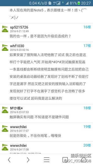 帖子名稱: 三星note7觸屏近日開始不靈敏