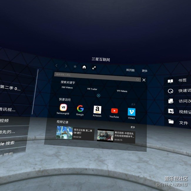 幾天前在三星應(yīng)用商店發(fā)現(xiàn)三星推出了VR瀏覽器。通過VR可以體會(huì)到不同于手機(jī)、電腦的互聯(lián)網(wǎng)瀏覽感受。