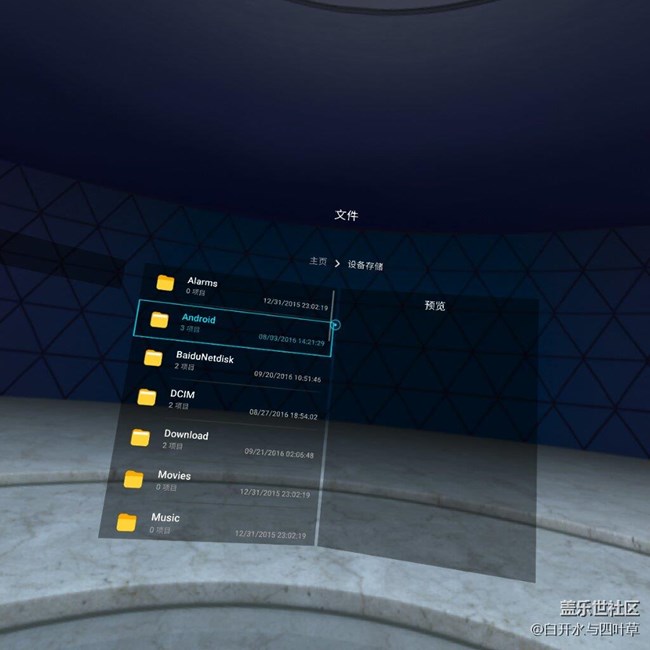 三星VR瀏覽器通過右邊文件可以進(jìn)入手機(jī)文件,通過這一功能我們可以選擇手機(jī)上下載的視頻資源等,這是VR使用中的重中之重。