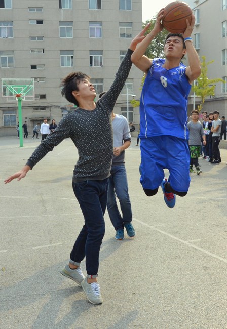 這兩張是我們學(xué)校籃球賽時(shí)我拍攝的。那么大家來(lái)猜一猜哪個(gè)用了大光圈哪個(gè)用了小光圈呢?(看看局部的模糊程度就知道啦