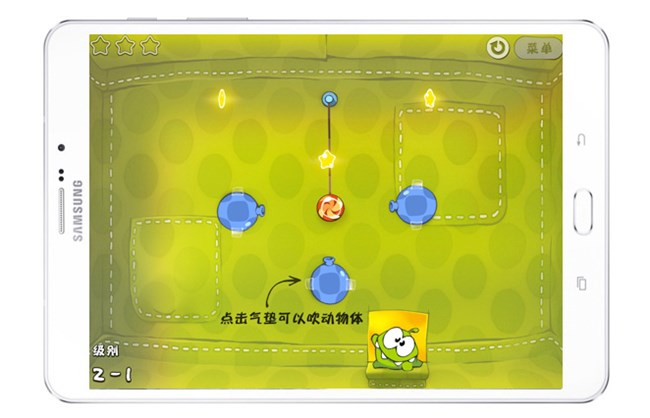 通過剪斷繩索讓綁著的糖果掉入怪獸嘴里,你就可以通關(guān)了!而最大的難度就在于必須計(jì)劃好讓糖果在掉落的過程中碰到所有星星,是不是覺得很有趣呢?園哥已經(jīng)技癢忍不住想要試一試了呢!