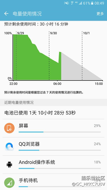 從29號下午6點沒玩手機,當時還有61%電,今天早晨一看還有33%電,更新過后也沒下過新的軟。