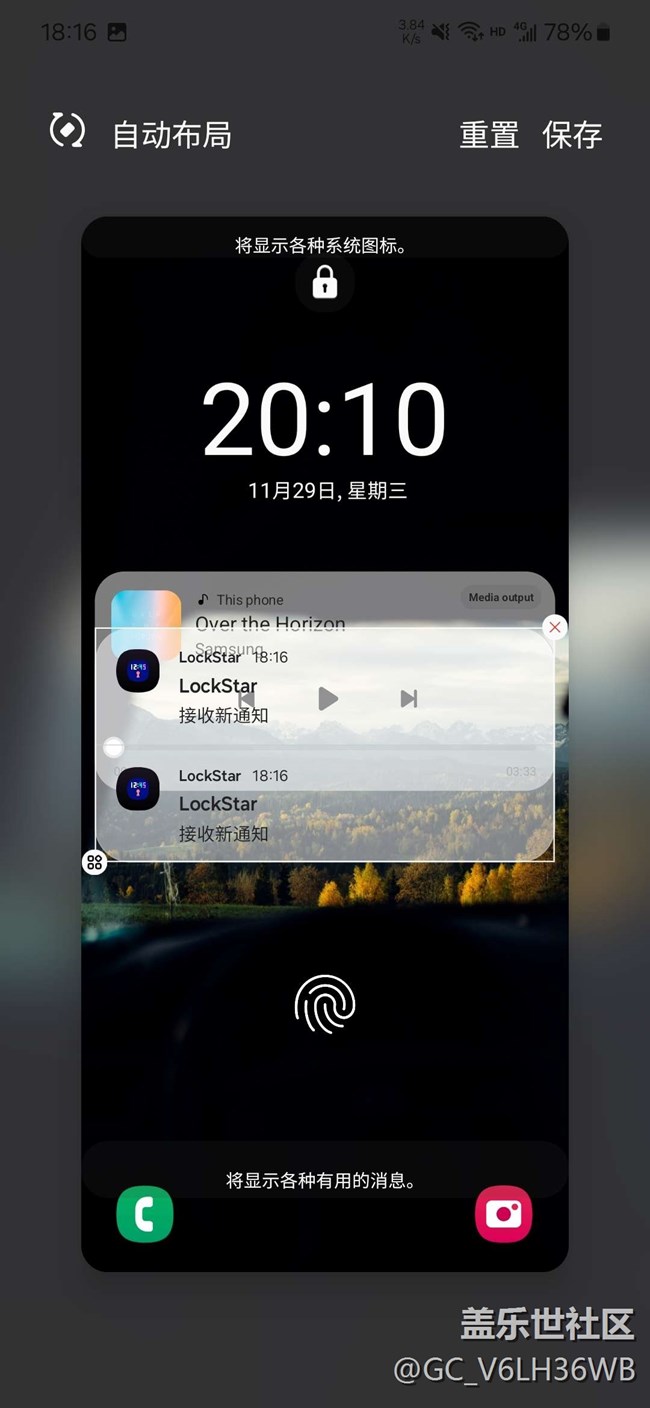 設(shè)置的位置重疊又有多通知,應(yīng)該自動挪動到音樂下。