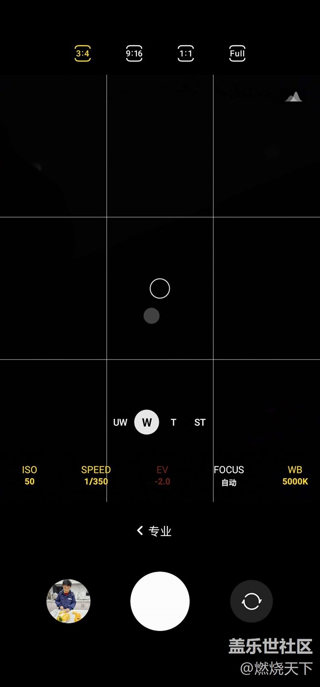 相機進入專業(yè)模式。只有默認的1200萬像素共選擇,
