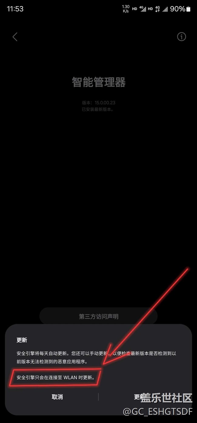 關(guān)于三星。智能管理器。引擎更新只允許Wif情況下更新問題 圖片