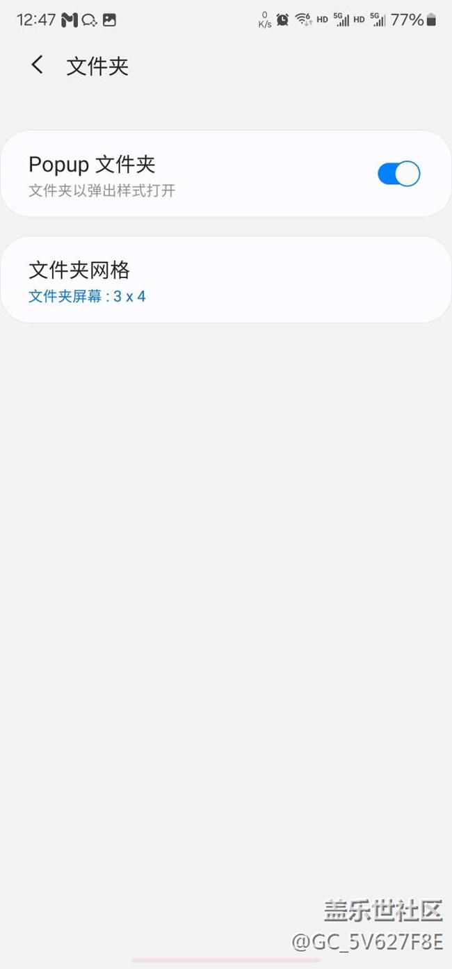 S22ultra在更新6.0后無(wú)法設(shè)置文件夾底色,設(shè)置參考good luck -home up-文件夾-popup文件夾。更新前可以進(jìn)popup里面設(shè)置,更新后popup只剩開關(guān)功能