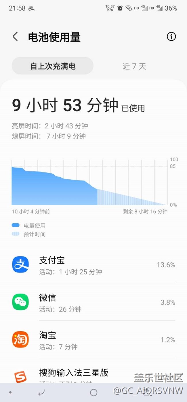 亮屏不夠三個小時,耗電量也有85-36=49%