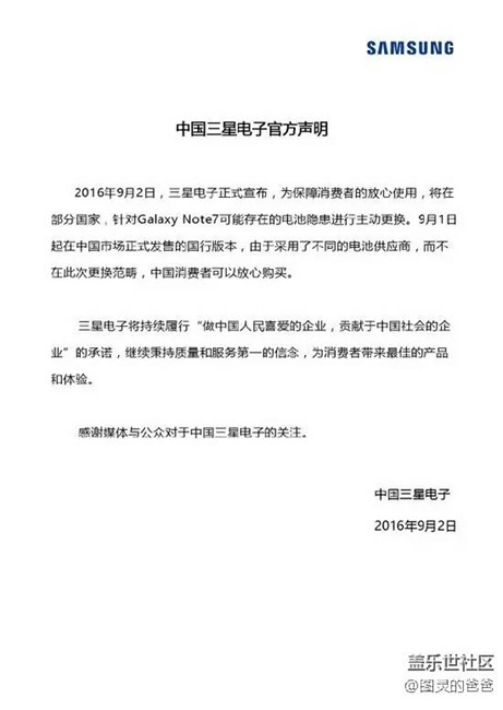 張思童看到三星這樣的聲明之后放心地買了Note7