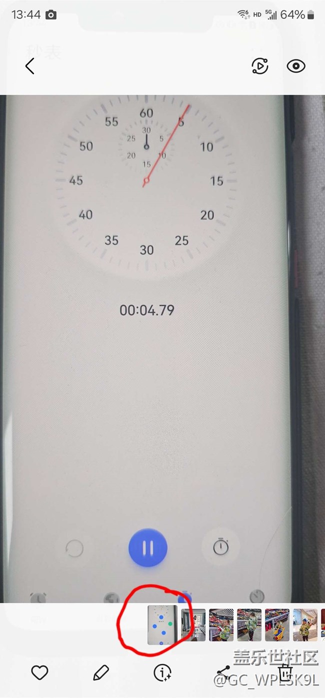 按下快門后,立即查看照片,此時(shí)下方縮略圖那四個(gè)小點(diǎn)在旋轉(zhuǎn)(意味著正在處理圖片),大約5秒后處理完成,但是畫面變動(dòng)了(不是快門按下的那一瞬間了),并且發(fā)紅。通過拍攝別的手機(jī)的秒表,發(fā)現(xiàn)使用12M像素的時(shí)候約延遲0.05秒,使用50M時(shí)約延遲0.25秒。這是什么情況?如圖1,拍攝時(shí)顯示04秒79,同時(shí)下方縮略圖那里有4個(gè)點(diǎn)在晃,顯示正在處理;處理完后如圖2所示,變成了05秒03,延遲了0.24秒。
