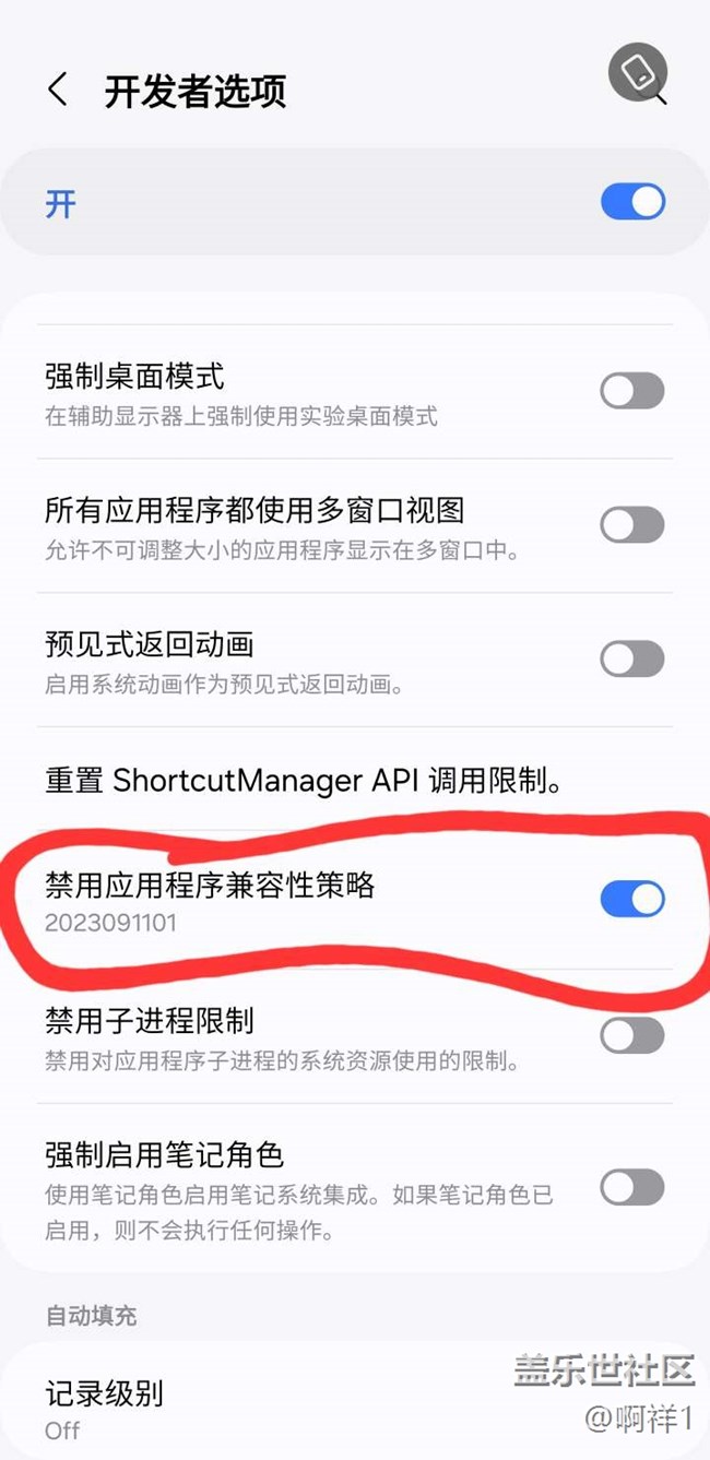 開發(fā)者選項(xiàng) 禁用應(yīng)用程序兼容性策略 圖片