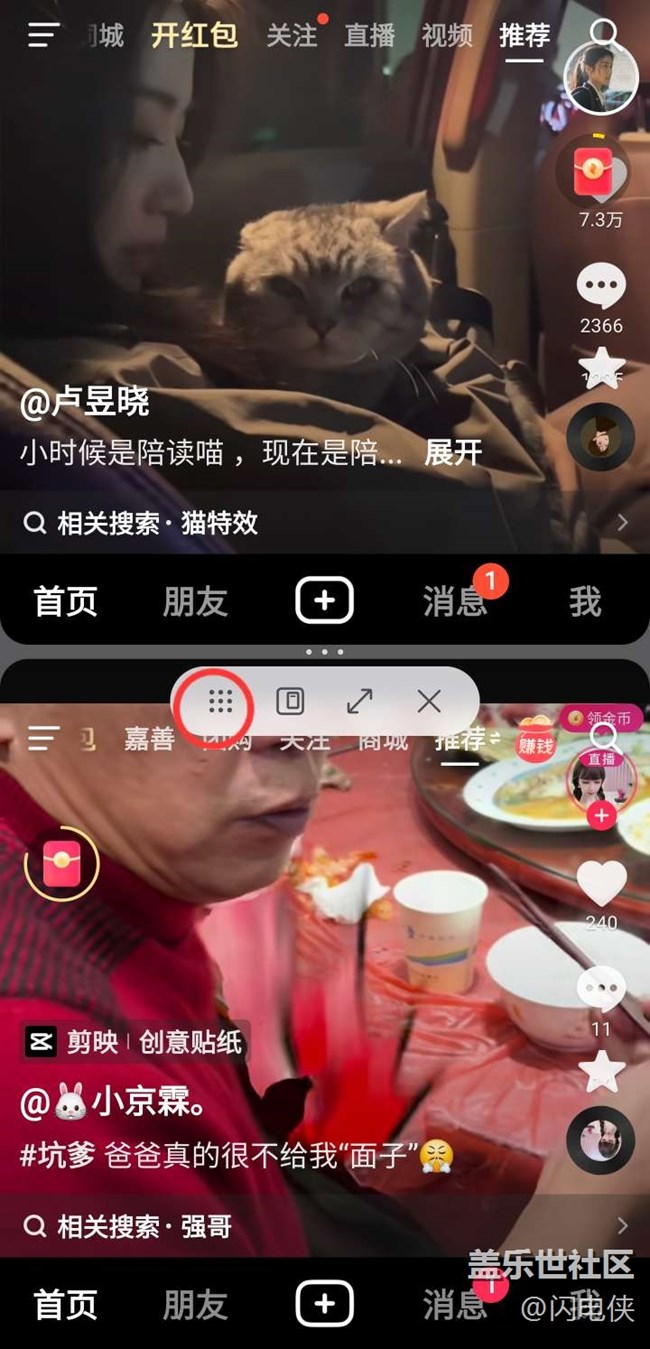 就是在應(yīng)用雙開時(shí)要切換應(yīng)用,使用中的軟件之前是變灰不能再點(diǎn)的,能清楚的知道正在使用中的是哪兩個(gè)軟件但現(xiàn)在依然能夠打開,像抖音這種有普通版極速版火山版的很容易記不清又重復(fù)打開,就不能像之前5.0版本那種使用中的直接變成灰色不能點(diǎn)的那種,還有就是這個(gè)切換界面,打開軟件重疊在一起,有點(diǎn)眼花繚亂層次不分明
