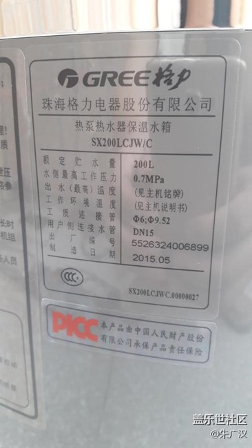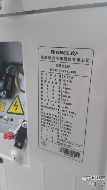 今天朱家裝了臺格力御雅200升空氣能熱水器。 圖片