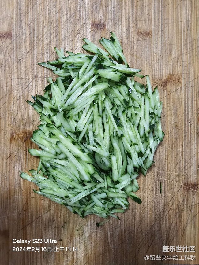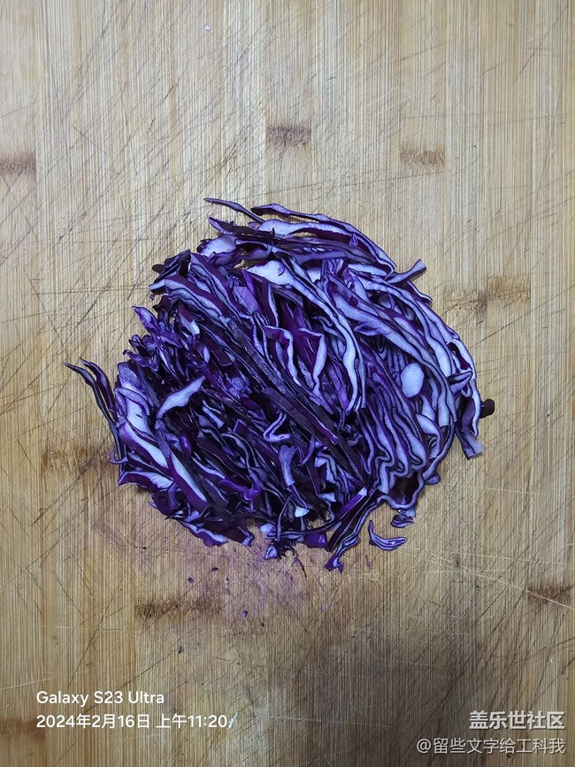 步驟1:將黃瓜運(yùn)用斜刀切成絲狀,記住不要太細(xì),否則影響吃起來的口感和爽快感;再將千張用豎刀切成長條狀,同樣不能太細(xì),否則容易影響吃起來的味道;最后將一塊紫甘藍(lán)(大概整體紫甘藍(lán)的四分之一)用豎刀切成條狀,可以稍微粗點(diǎn),這樣吃起來有清脆感。