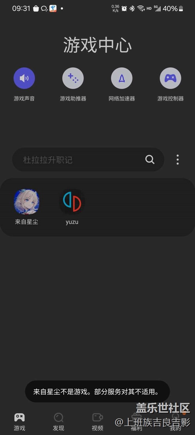在游戲中心中導(dǎo)入本地游戲提示來自星塵不是游戲,無法使用部分功能。且在游戲插件里面識(shí)別不出來,無法使用游戲加速器