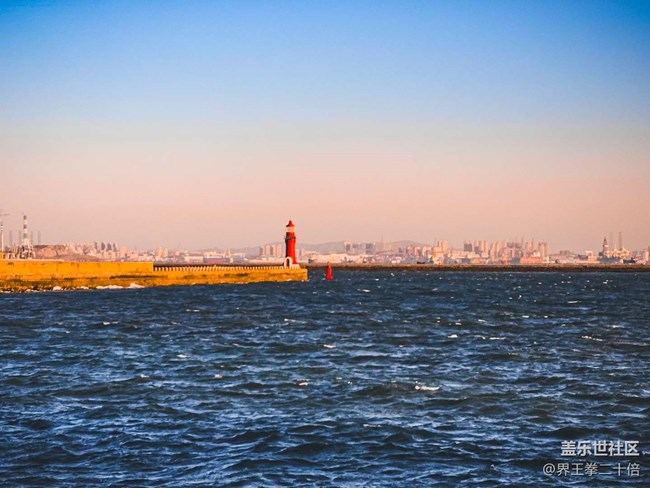 遠(yuǎn)處的燈塔也披上了金黃色的外衣