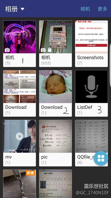 手機是S7edge,相冊好煩人,會自動新建相冊和下載圖片,本人設(shè)置相片是保存到外置的內(nèi)存卡的,在拍照過程中,手機會自動新建一個“相機”文件存照片(見照片上的標注1),保存的路徑是手機內(nèi)存,但只保存了幾張,其它的又保存到了外置的內(nèi)存卡上。