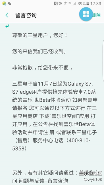 收到蓋樂世社區(qū)回復S7,S7edge的安卓7.0將要開始內測 圖片