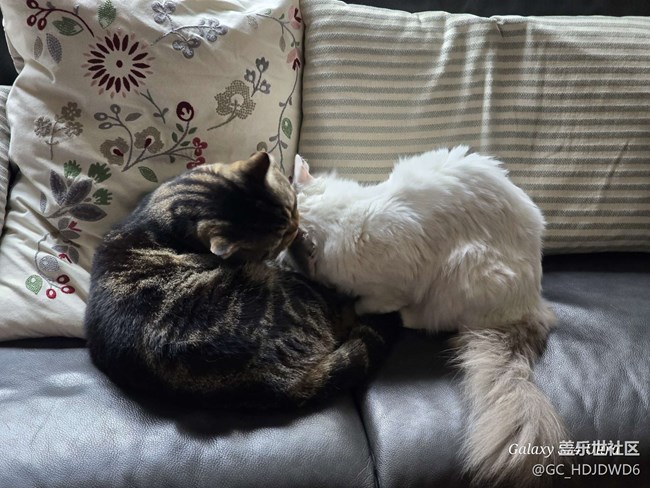 春天下沙發(fā)上兩只小貓咪愛(ài)意綿綿