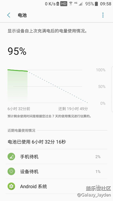 早上起來,看了看,6小時,掉了5%……沒開息屏提醒沒裝任何軟件啊!一小時1%的待機(jī)耗電量,可以說這待機(jī)耗電量不合格,7.0不是優(yōu)化了待機(jī)耗電量嗎?三星卻交出這樣的成績?