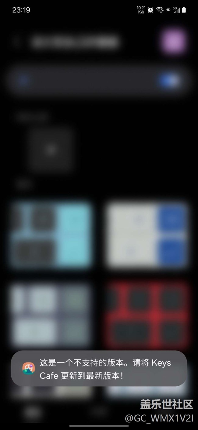 國(guó)行,s23升級(jí)到最新系統(tǒng),keys cafe最新版本,但最近發(fā)覺無法更換鍵盤外觀,什么原因?如圖:
