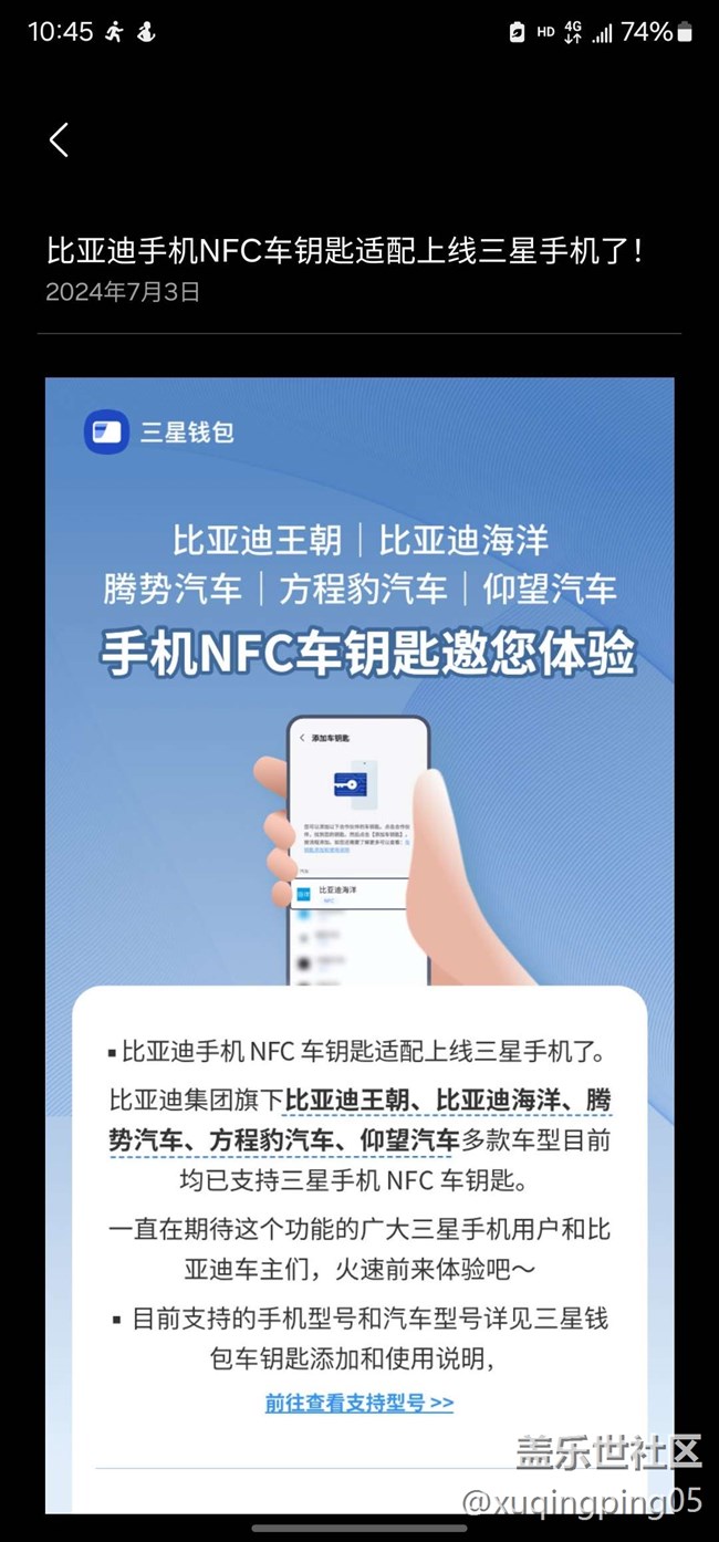 三星終于支持比亞迪NFC了 圖片