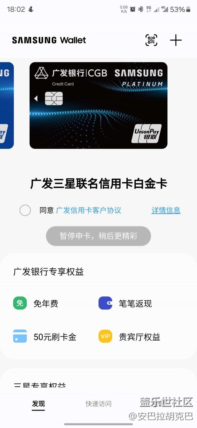 能不能把信用卡廣告關掉啊?!??!刷個門禁打開就是這個頁面,做成記賬頁面或者弄個開關不行嗎?三星就缺這仨瓜倆棗的是吧