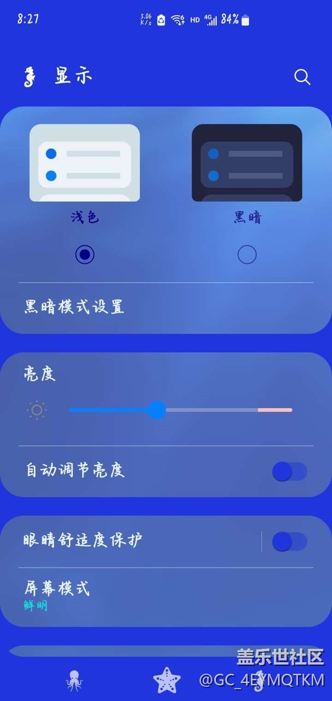后來(lái)發(fā)現(xiàn)設(shè)置里,屏幕顯示→淺色模式變了,符號(hào)變成了海洋生物?。。。?br>暈死?????從來(lái)沒(méi)用過(guò)這個(gè)鬼異的設(shè)置,怎么會(huì)自己變成了這個(gè)樣子?(見(jiàn)圖片)