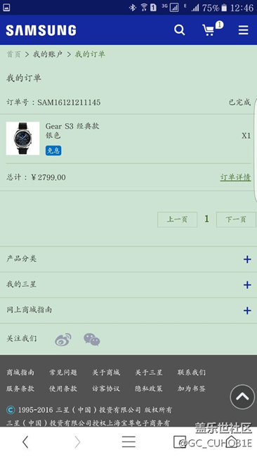12號10點1左右進的搶購s碼頁面,中午發(fā)的s碼,馬上就下單了,14號收的貨,使用一天。待機一晚上消耗5%左右電量。目前感覺滿意,功能熟悉中,雖然支持支付寶,還是希望趕快增加三星pay。