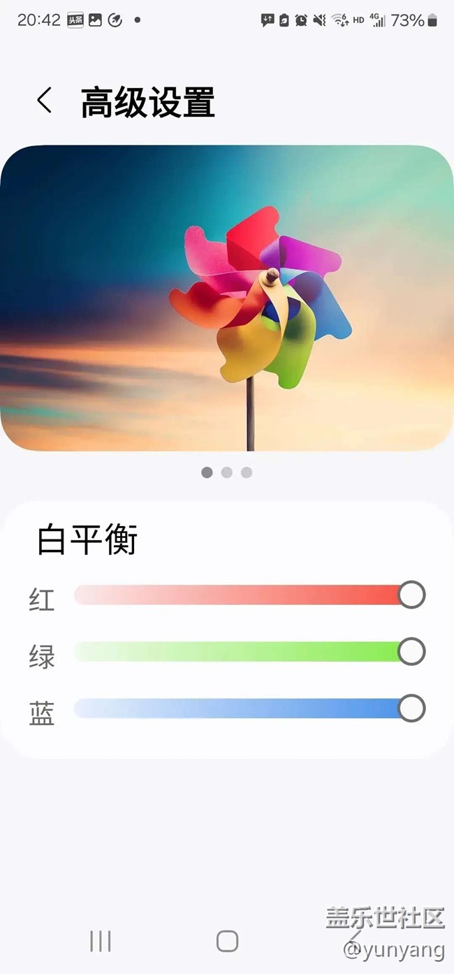 下面分別是三星s23UItra和s24UItra的白平衡頁面截圖,缺失”鮮艷度”調(diào)整選項的截圖一目了然。