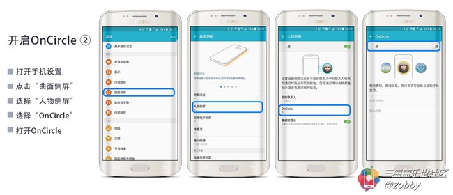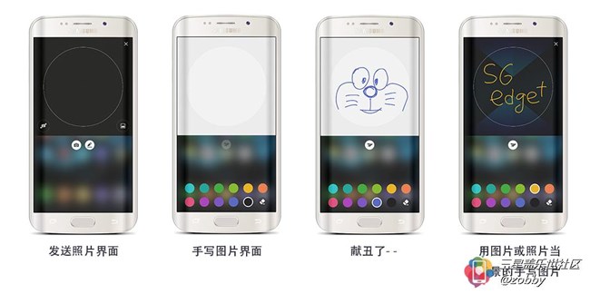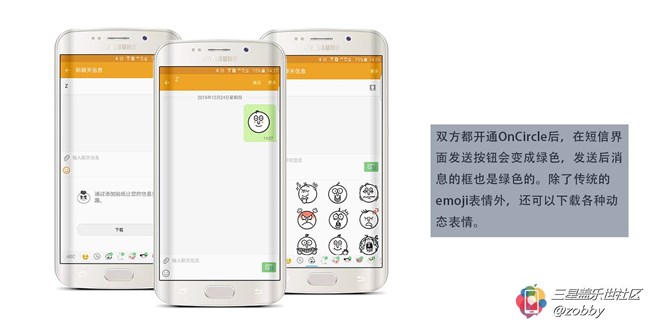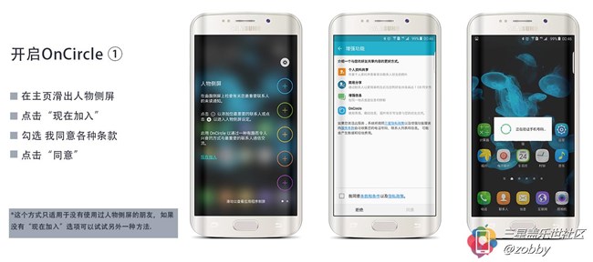 在S6 edge+的人物側(cè)屏里有一個沒翻譯的英文“OnCircle”,三星只寫了一句“使用表情、戳動信息、圖片和手寫信息與您的好友交流。” 大家初次使用可能不是很明白這個是什么東西吧。