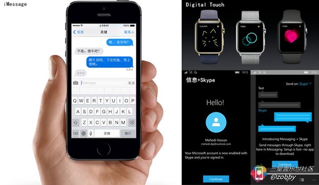 在ios平臺上有iMessage,windows10上有信息+Skype,他們都可以使用網(wǎng)絡(luò)進(jìn)行免費(fèi)的交流。我對三星OnCircle的總結(jié)就是集合了iMessage和類似Apple Wach上Digital Touch功能的手機(jī)對手機(jī)間溝通的平臺。