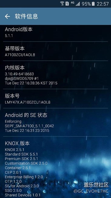 6.0的待機沒話說,倆字,??比!但是使用軟件電量就崩了,一天三沖。充電速度幾乎每次兩小時多幾分才充滿,不算龜速也不能稱快充。刷回如圖下的版本后充電速度回歸一個半小時不到,電池稍微比6.0版本耐用多了,同樣的看頭條,6.0平均3.5分鐘用%1,這個版本4-6分鐘才掉1%,續(xù)航就自己算吧!系統(tǒng)穩(wěn)定,流暢無bug,補充一點這個版本少了三星支付和蓋樂世社區(qū)app,三星云三個軟件