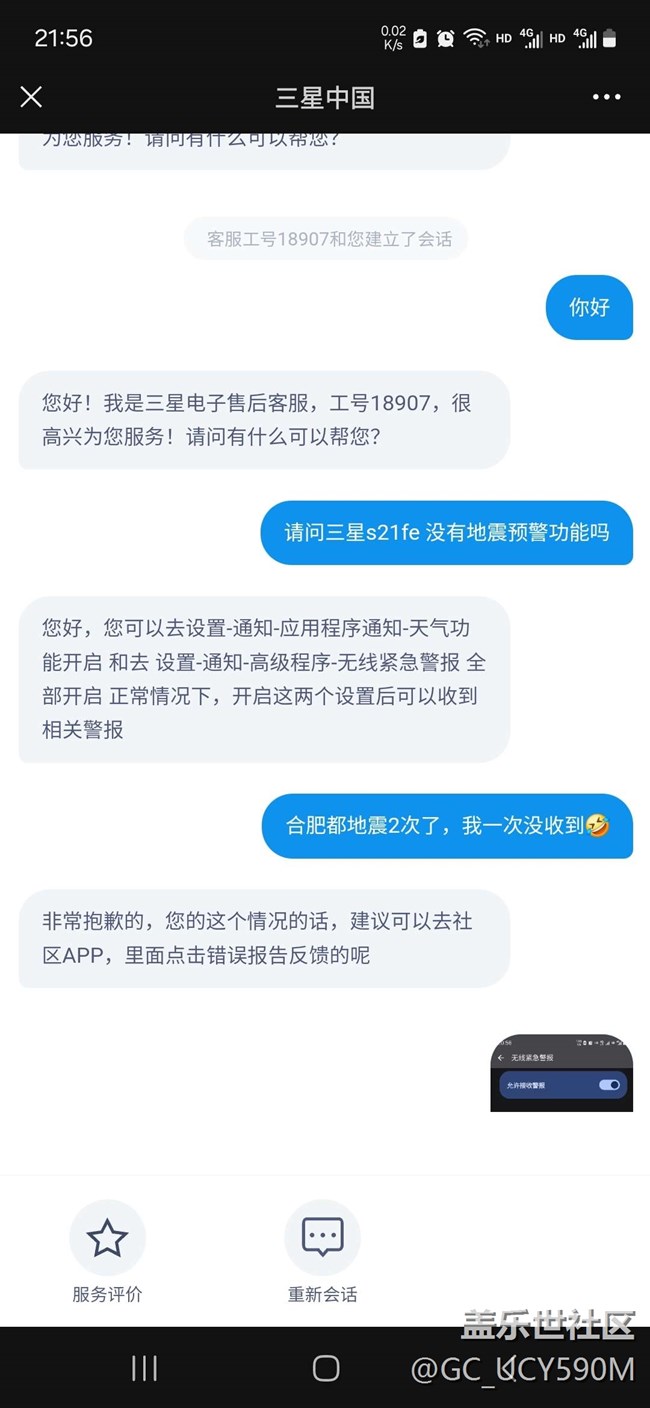 請(qǐng)問三星Galaxy s21 fe 有地震預(yù)警功能嗎?? 圖片
