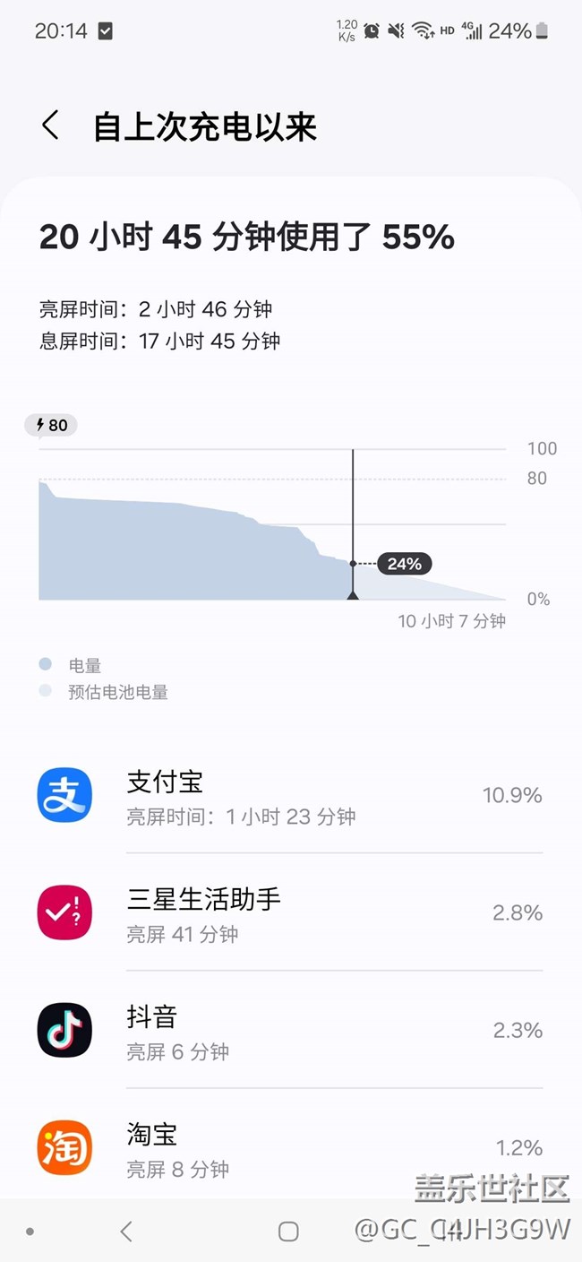 55%的電量,也就用到20小時左右