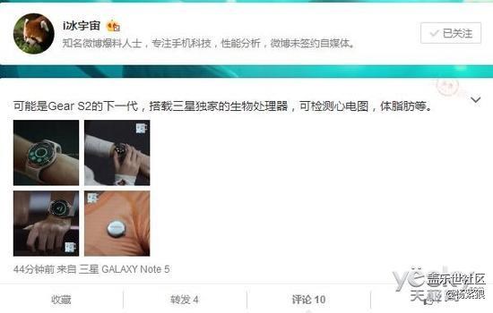 今日上午,專注手機(jī)科技和性能分析的知名微博爆料人士@I冰宇宙剛剛在微博上曝光了三星下一代Gear S2智能手表,并稱搭載三星獨家的生物處理器,可檢測心電圖、體脂肪等。