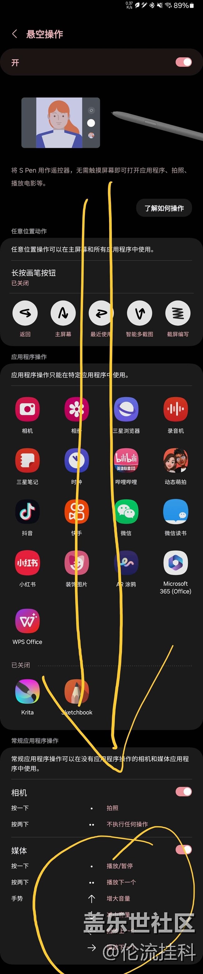 #三星GalaxyTabS9#更新#OneUI6.1# 后,spen控制單機(jī)雙擊控媒體播放、下一曲間歇性失效圖1。正常應(yīng)該是圖2那樣紫色圖標(biāo)。