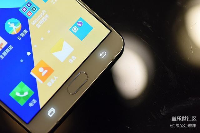 三星經(jīng)典的HOME鍵設(shè)計(jì),同時(shí)還集成了目前速度最快的指紋識(shí)別感應(yīng)器,Galaxy A9極快速理念也在指紋識(shí)別上得到了充分的體驗(yàn)。返回和菜單按鍵并沒有消失不見,成為了HOME兩側(cè)隱形的翅膀,手指只要輕輕觸動(dòng)就會(huì)亮起。