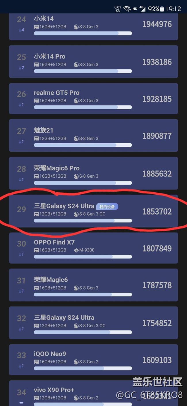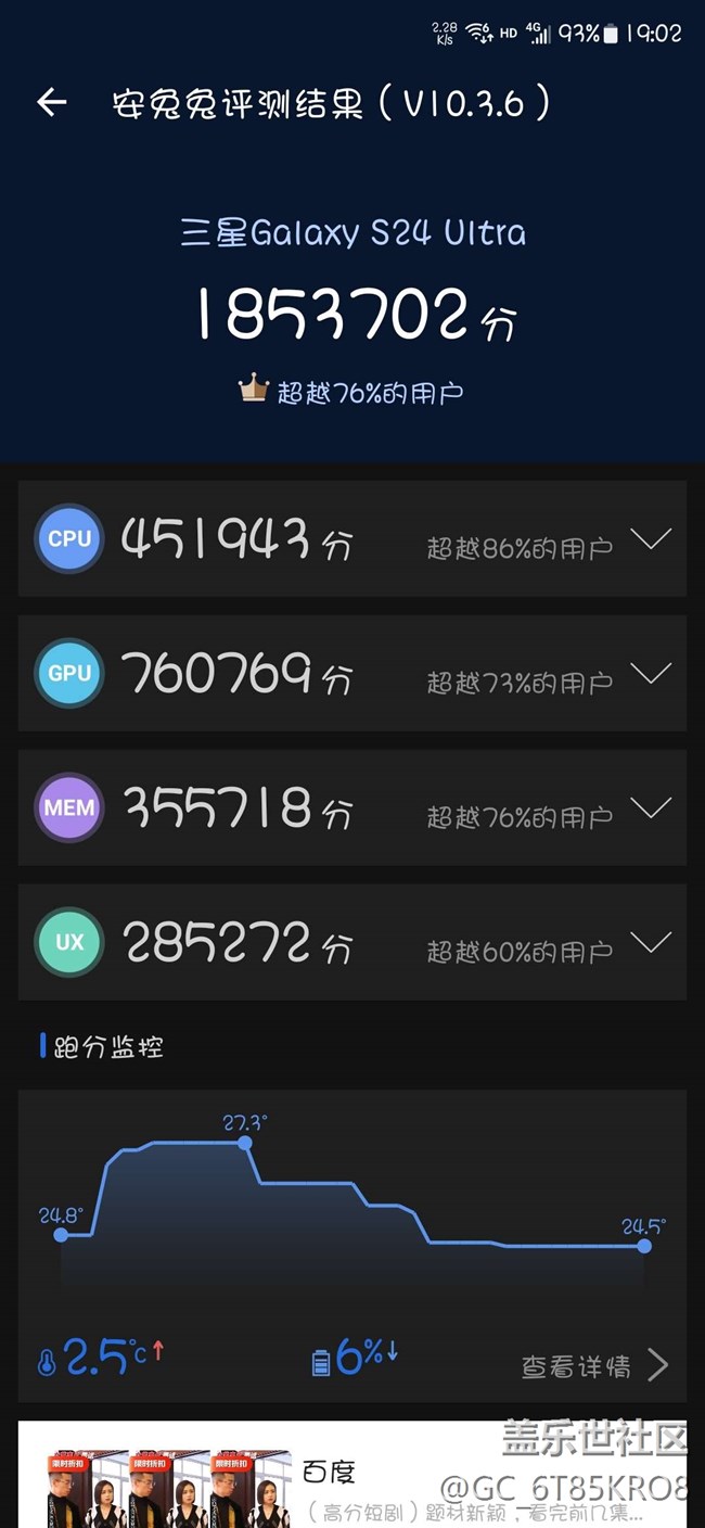 S24ultra安兔兔跑分1853702分 圖片