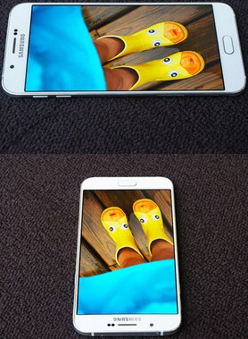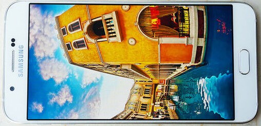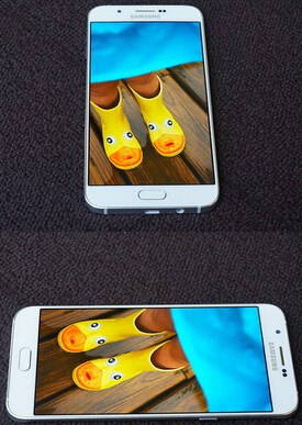 Galaxy A8擁有一塊5.7英寸的屏幕,比S6的5.1英寸大不少,而材質(zhì)也使用了三星御用的Super AMOLED。這種材質(zhì)的屏幕飽和度非常高、色彩顯示非常鮮艷。相比目前主流的IPS屏幕,Super AMOLED屏幕具備更高的色域,更好的表現(xiàn)能力。而A8屏幕的分辨率為1920x1080,ppi為386。