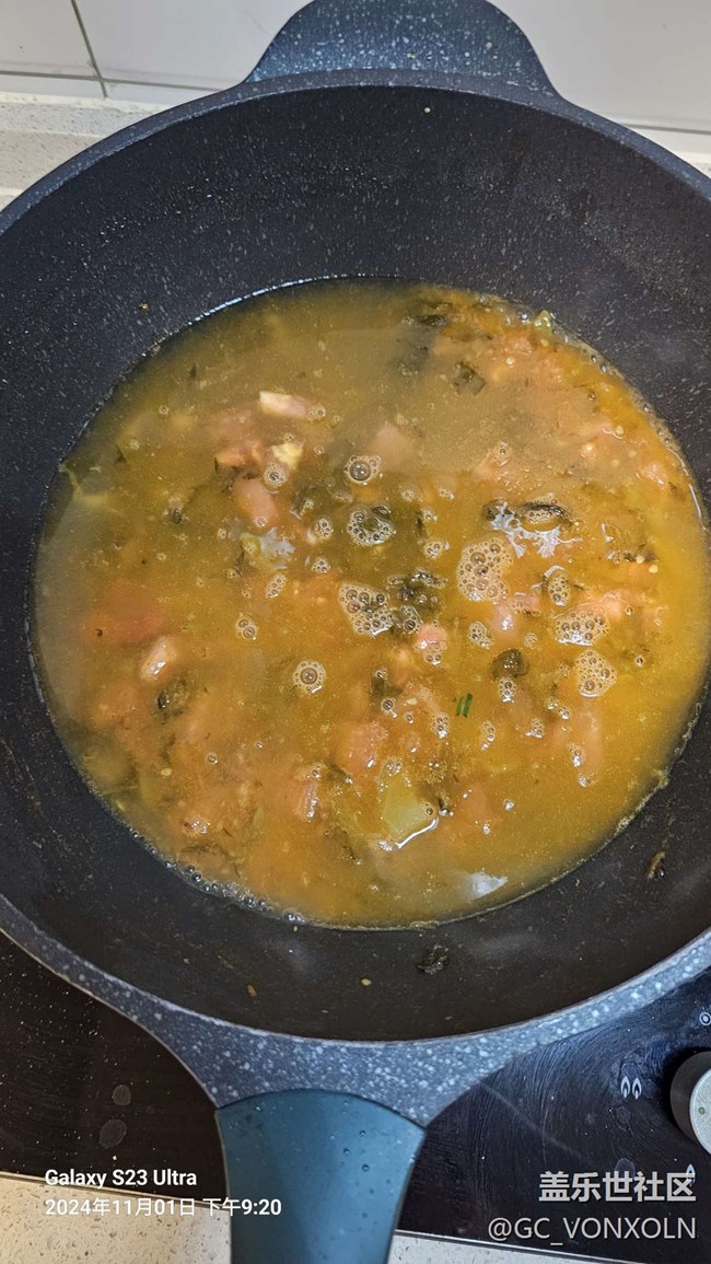3、熬制湯底,這里用了酸菜和西紅柿,增加點(diǎn)酸度