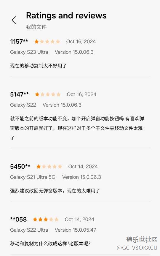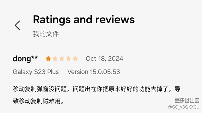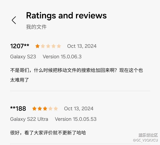 三星應用商店中 “我的文件App” 的評論區(qū)摘錄。