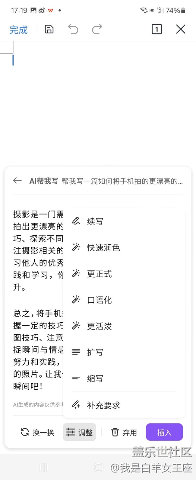 三星手機(jī)的WPS AI功能 圖片