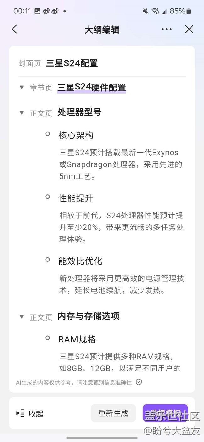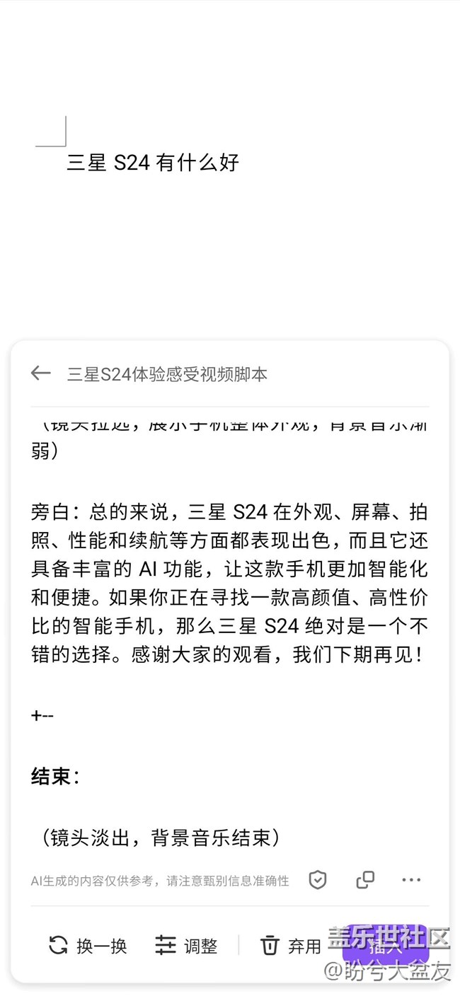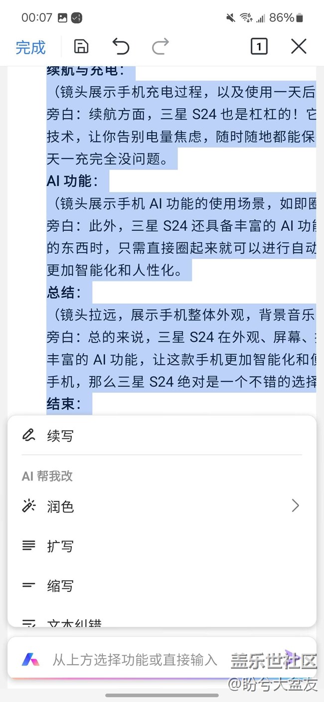 帖子標(biāo)題: 三星手機(jī)支持WPS AI幫寫PPT / Word