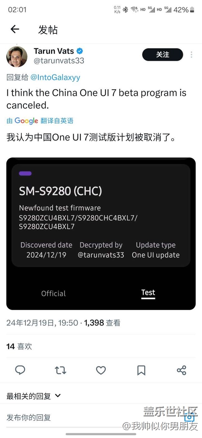 外網(wǎng)說我們oneui7 beta計劃被取消了。 圖片