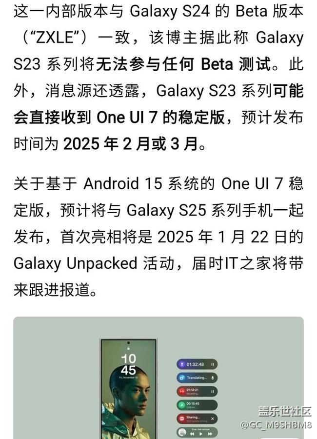 帖子標(biāo)題: 國行S24親列大概率不會內(nèi)測 one ui7.0了