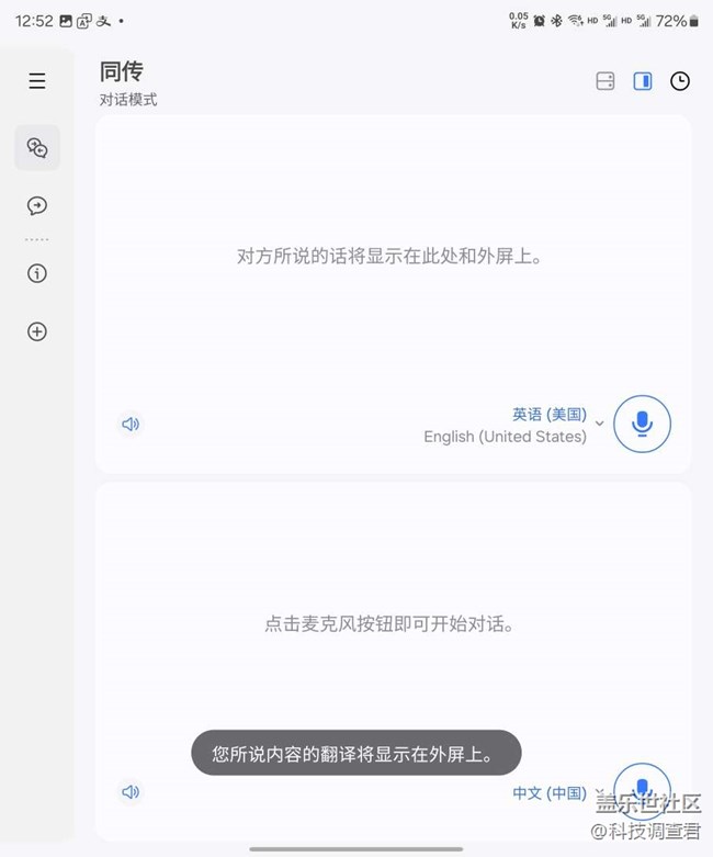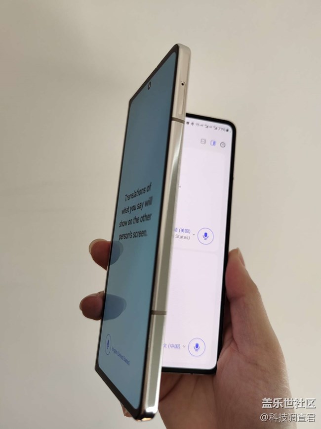 幸好我正在使用的這臺三星Galaxy Z Fold5,所搭載的同傳翻譯功能,自帶多國語言包,只要提前下載完成,下滑手機快捷欄就能使用,不然我都不能和外國小哥順暢交流,不得不說三星手機同傳真的特方便又省心。