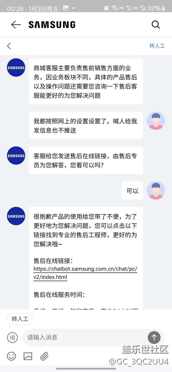 已購買S24U四個月 一直很困擾我的一個故障,就是因為工作需求下載的app“飛書”可是這個手機每次都不能及時推送消息(無任何推送)在我使用一月后聯(lián)系三星客服 客服通過遠程控制查看設(shè)置項無任何設(shè)置異常 建議我多升級幾次推送的升級版本,但是直到現(xiàn)在2025年了 中間四個月版本更新沒有一次能解除這個故障,作為一個智能手機 能打電話能收信息應(yīng)該是一個常態(tài)化現(xiàn)象 我是一直使用的ios系統(tǒng) 就是因為S24U各項機能足夠吸引我才轉(zhuǎn)成三星用戶 可這個故障極大程度影響我的用機體驗,客服及售后已完全沒法解決飛書app不推送信息的問題要我到社區(qū)發(fā)文求助