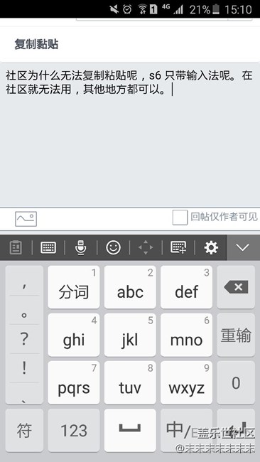 社區(qū)為什么無法復制粘貼呢,s6 只帶輸入法呢。在社區(qū)就無法用????,其他地方都可以。