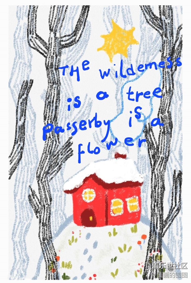 利用筆記里蠟筆的粗糲肌理,簡單創(chuàng)作冬日靜謐小景,又是心滿意足的一次繪畫體驗。
