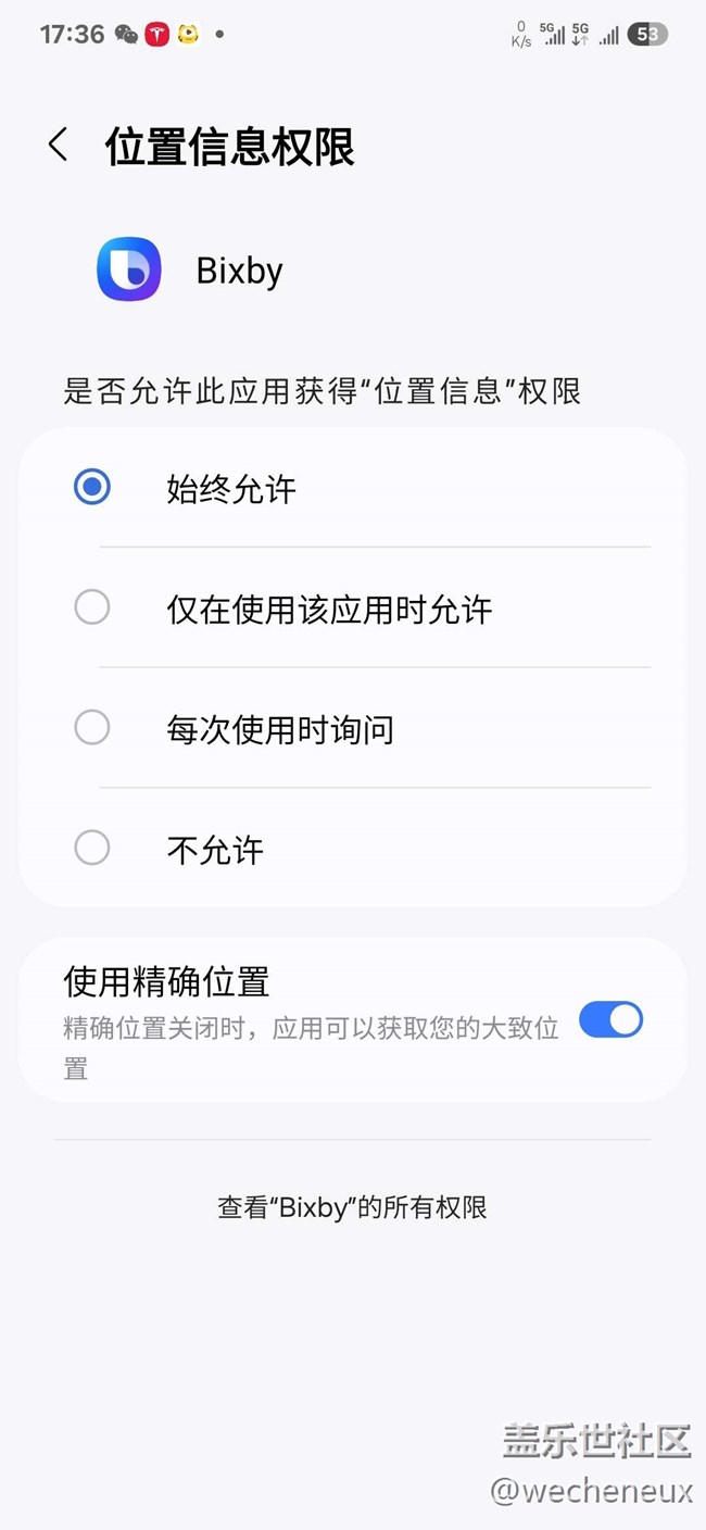 teslaAPP在ONE UI7中,定位權限選擇里無法選擇“始終允許”選項,導致無法實現(xiàn)靠近車輛解鎖功能,必須要解鎖手機,打開APP才能解鎖。其他應用則可以選擇此功能,